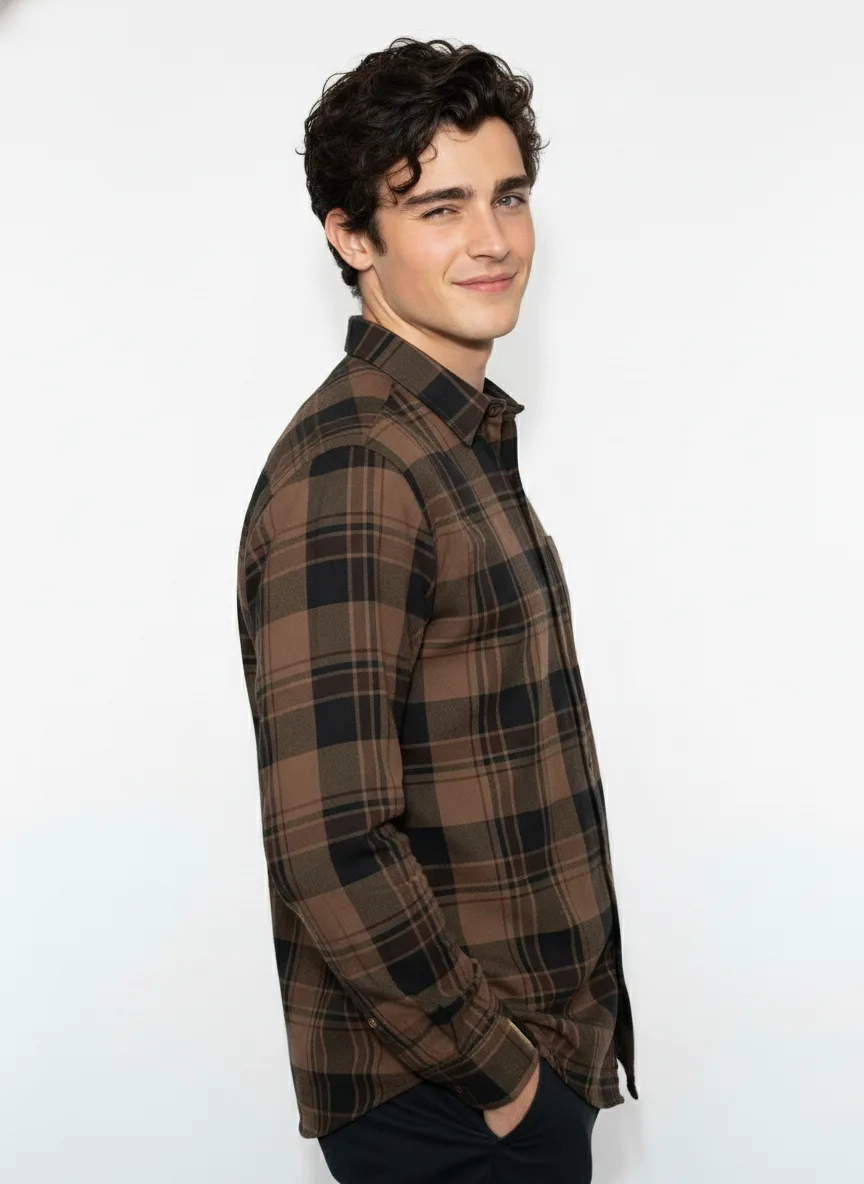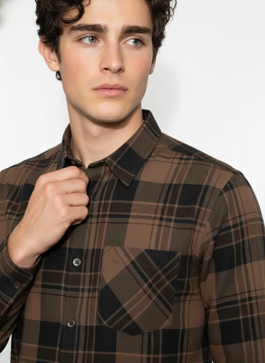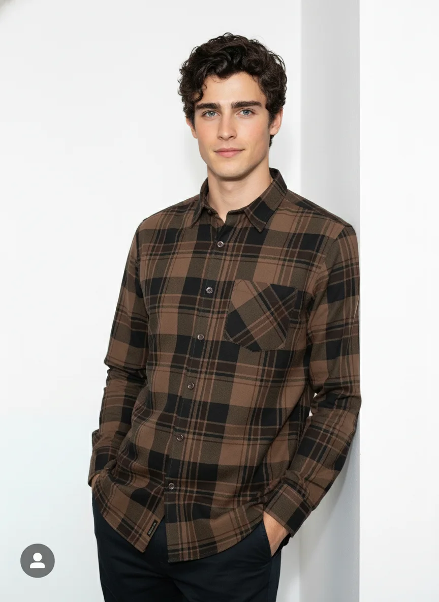 Elevate your everyday style with this premium brown checkered flannel shirt, designed for comfort, warmth, and timeless appeal. Featuring a rich earthy check pattern with subtle contrast tones, this shirt delivers a perfect blend of rugged charm and modern elegance. The soft brushed fabric ensures all-day comfort, while the structured collar and clean button placket keep the look refined.