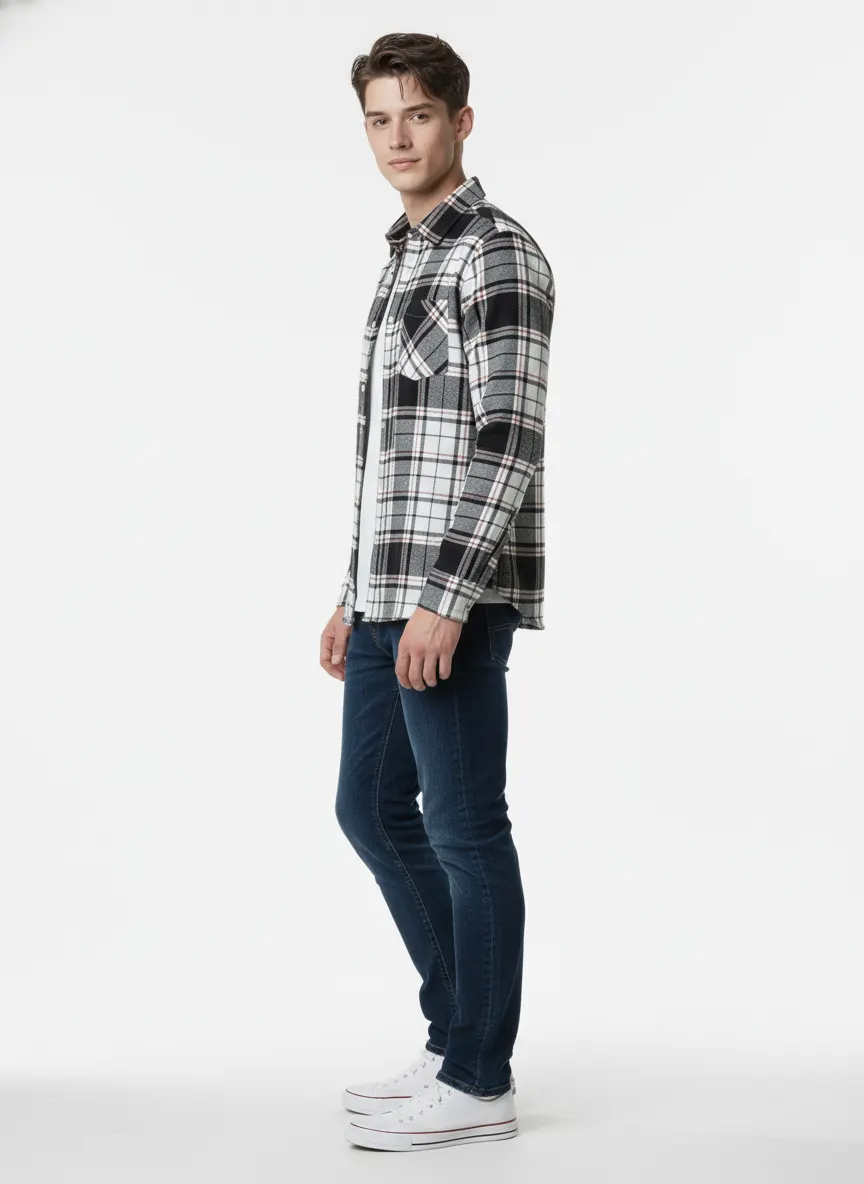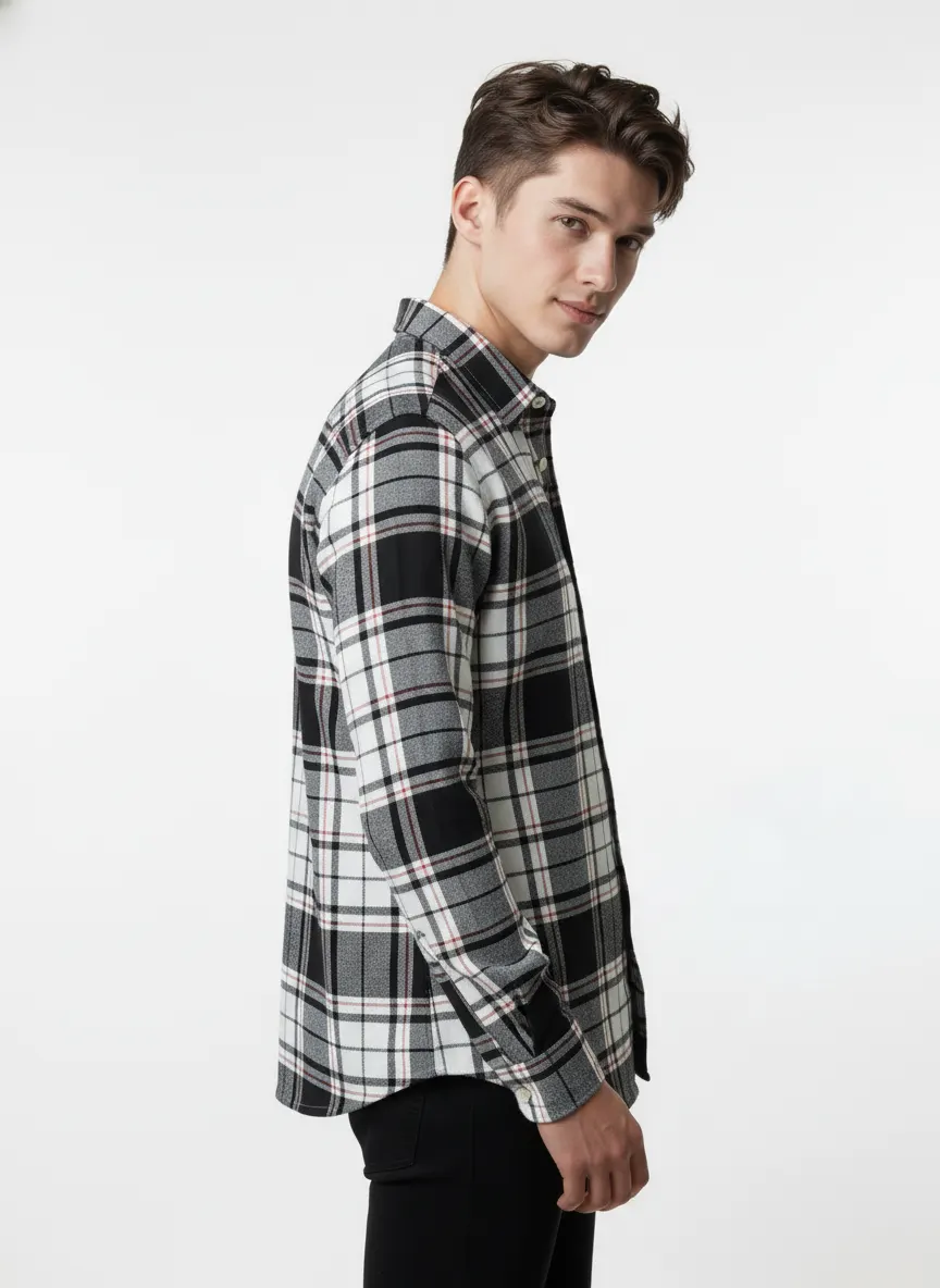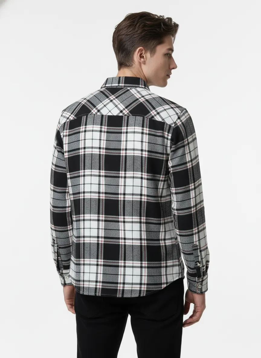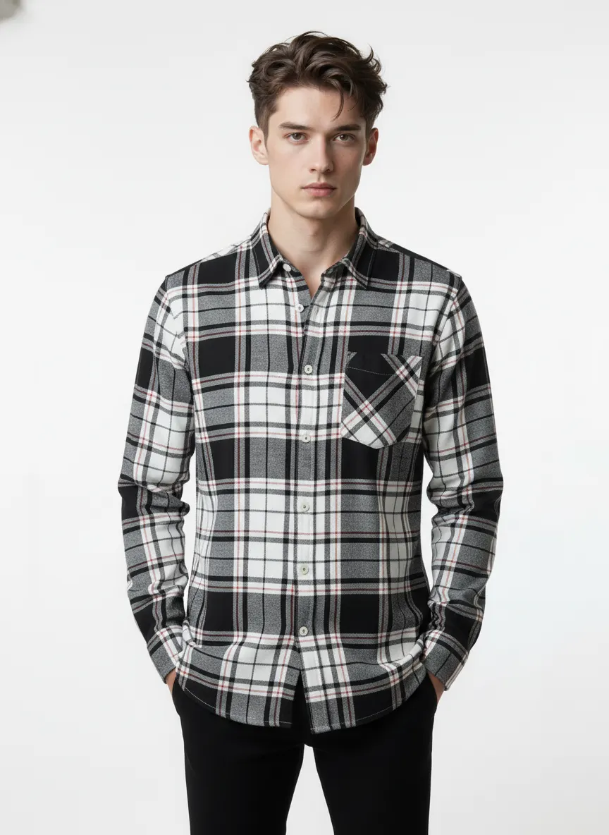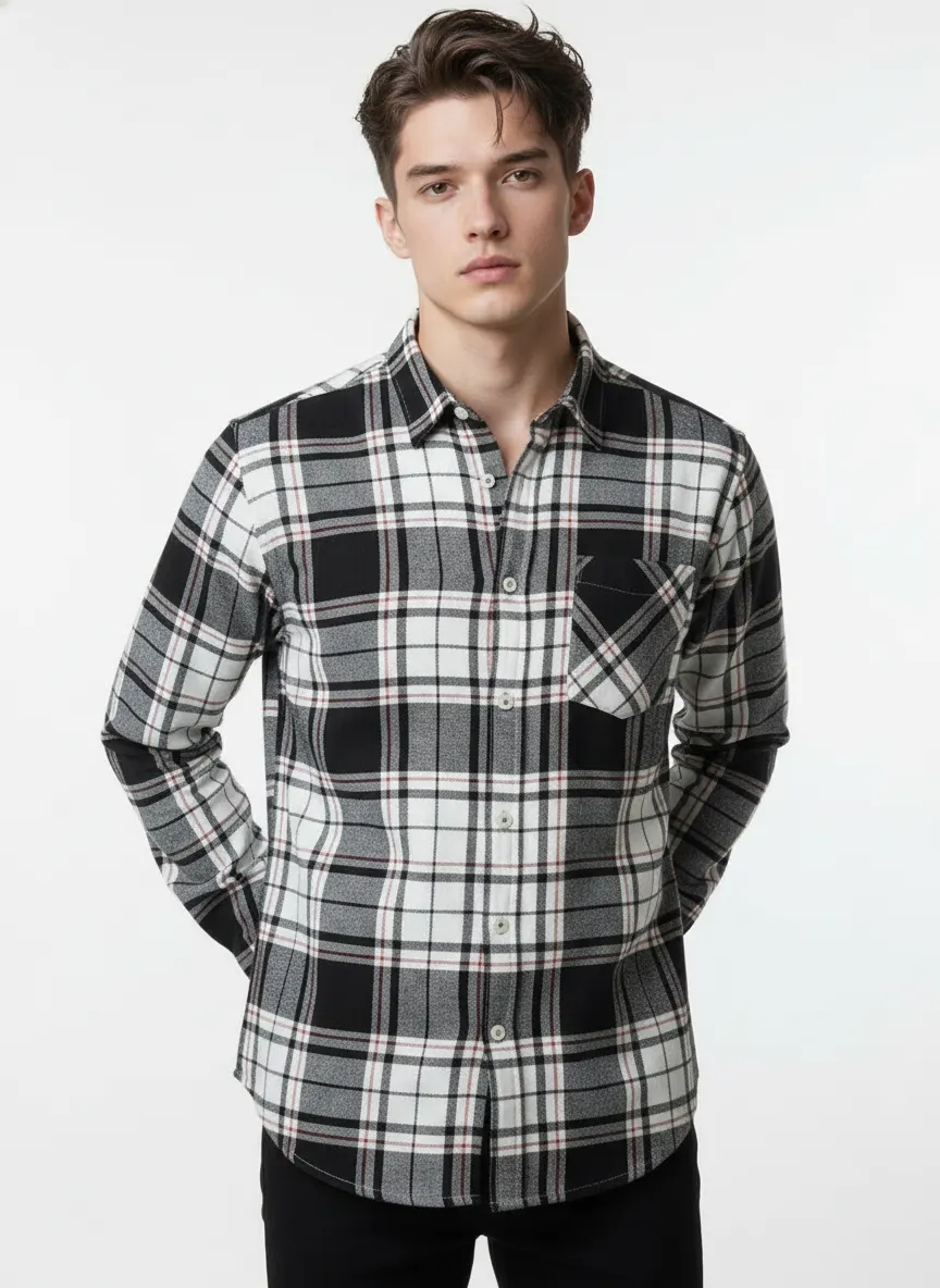 Step into effortless style with this premium black, grey, and white checkered flannel shirt. Designed with a balanced plaid pattern and a clean, modern silhouette, this shirt delivers a refined casual look that works across seasons. The soft brushed fabric offers warmth without feeling heavy, making it ideal for daily wear and evening outings.