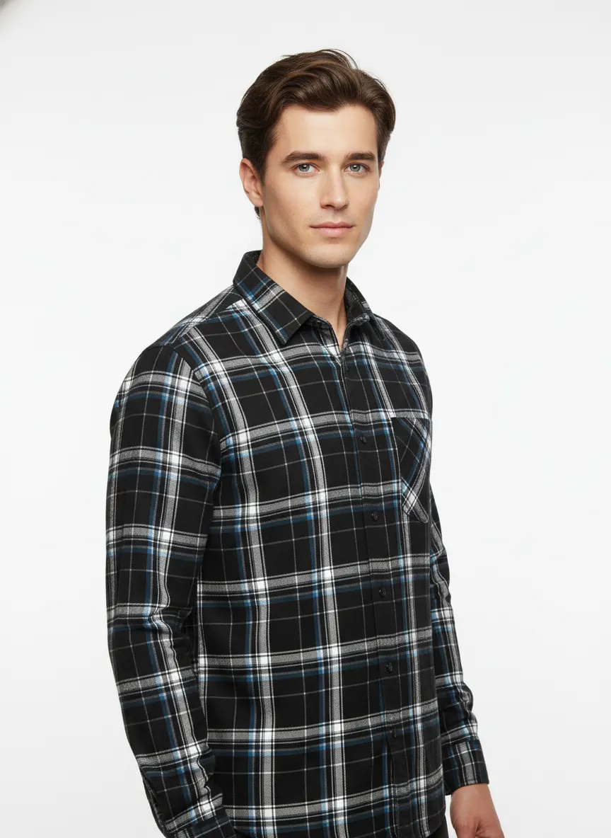 A modern classic designed for everyday confidence. The Midnight Check Shirt features a sharp black base with subtle contrast checks that give it a refined yet relaxed look. Crafted from soft, breathable fabric, it offers all-day comfort without compromising on style.